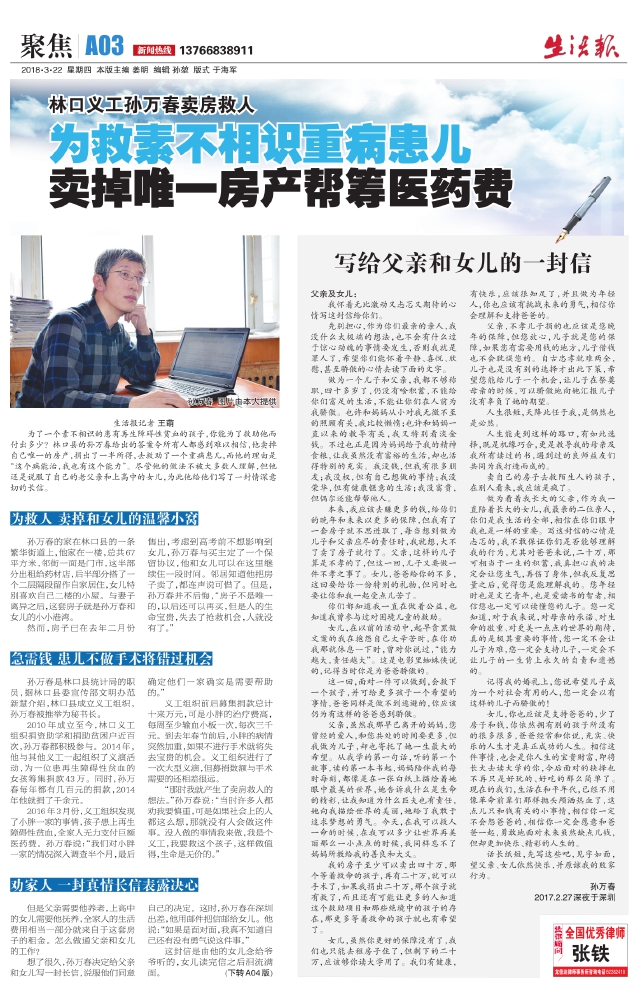 为救素不相识重病患儿卖掉唯一房产帮筹医药费