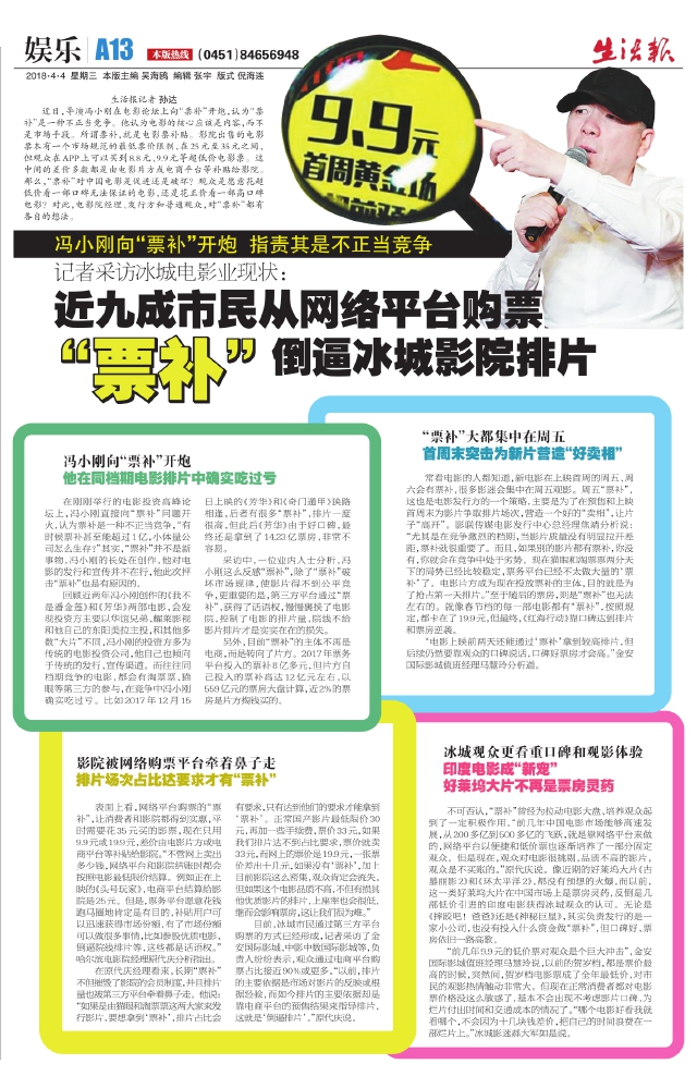 记者采访冰城电影业现状:近九成市民从网络平台购票“票补”倒逼冰城影院排片