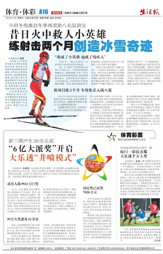 昔日火中救人小英雄练射击两个月创造冰雪奇迹