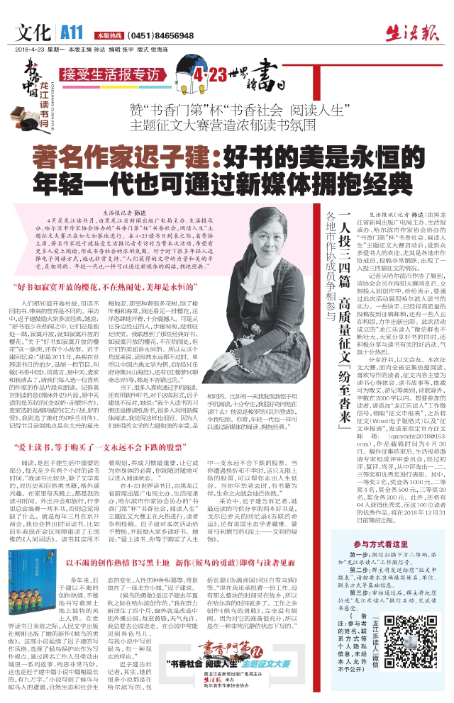 著名作家迟子建:好书的美是永恒的年轻一代也可通过新媒体拥抱经典