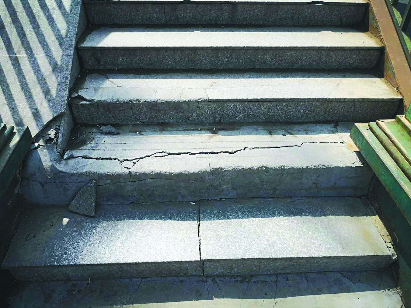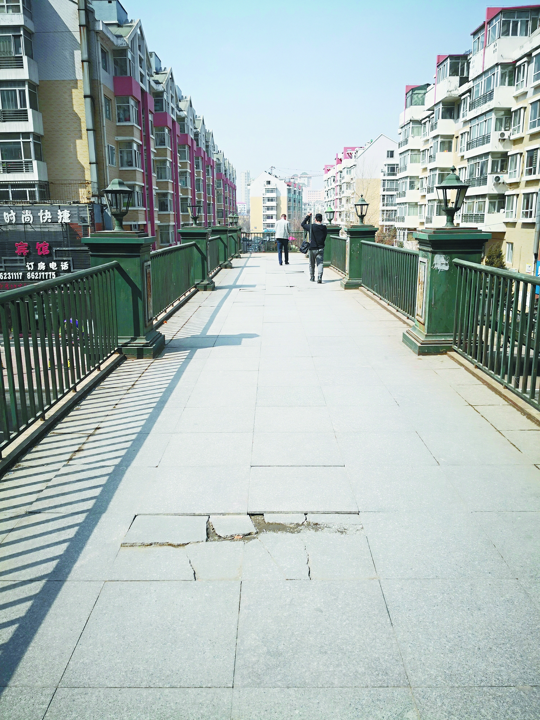 文/摄生活报记者于燕 过街天桥本是给行人过马路提供的安全保障设施,但是当台阶出现破损裂痕等情况时,反倒增加了安全隐患。日前,哈市有市民反映,南岗区征仪路一公交站附近的过街天桥,桥面道板晃动,桥面有多处裂痕,老人和孩子稍不注意就容易崴脚。对此,生活报记者来到多处天桥进行走访踏查。 地点一:征仪路大众新城三期附近步道板脱落桥面有裂纹 “我带孩子走过街天桥差点崴脚。”近日,58岁的王女士告诉生活报记者,她家住在南岗区大众新城小区,前几天带着孙女过道回家时,走过街天桥发现步道板晃动,并有多处裂痕。“桥面上的步道板看起来只是有裂痕,但是走上去是晃动的,老人和孩子有崴脚的危险。” 4月23日,记者来到这处天桥发现,靠近大众新城三期的过街天桥一侧上桥处步道板脱落一大片,台阶上有多处裂痕。走到天桥上,桥面多处步道板出现裂痕,走上去有好几块都是晃动的,过往市民有的稍不注意踩到上面就会被吓一跳。 地点二:征仪路东北林业大学门口台阶有裂痕还有碎砖散落 走访中,记者在征仪路东北林业大学门口的过街天桥看到,上桥处的台阶出现裂痕,旁边还有碎砖散落。家住附近的李女士告诉记者,她经常从这里路过,以前没有发现这个裂痕,可能是最近刚出现的。另一位行人小张表示,过街天桥本是行人通行的安全保障设施,希望相关部门能够及时修理,保障市民出行安全。 哈市道桥部门:尽快派人现场查看并修复 随后,记者将此事反映给12319城管热线,哈市道桥处一位姓于的工作人员回复称,将尽快派人到天桥现场查看情况,步道板出现裂痕脱落的问题将在1—2天尽快解决。 征仪路大众新城附近的天桥 征仪路林业大学门前的天桥