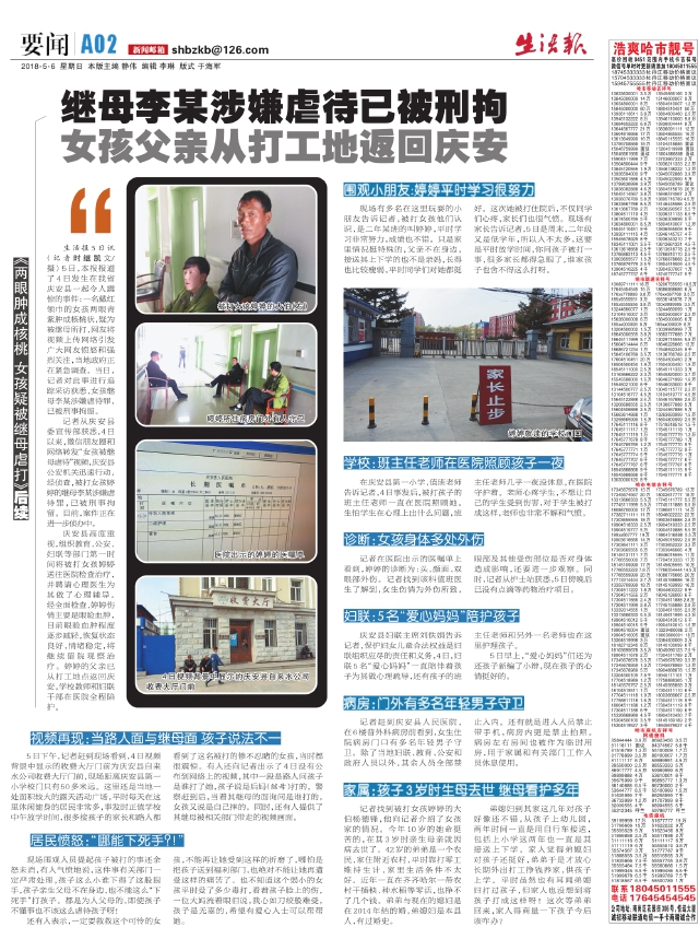 继母李某涉嫌虐待已被刑拘女孩父亲从打工地返回庆安