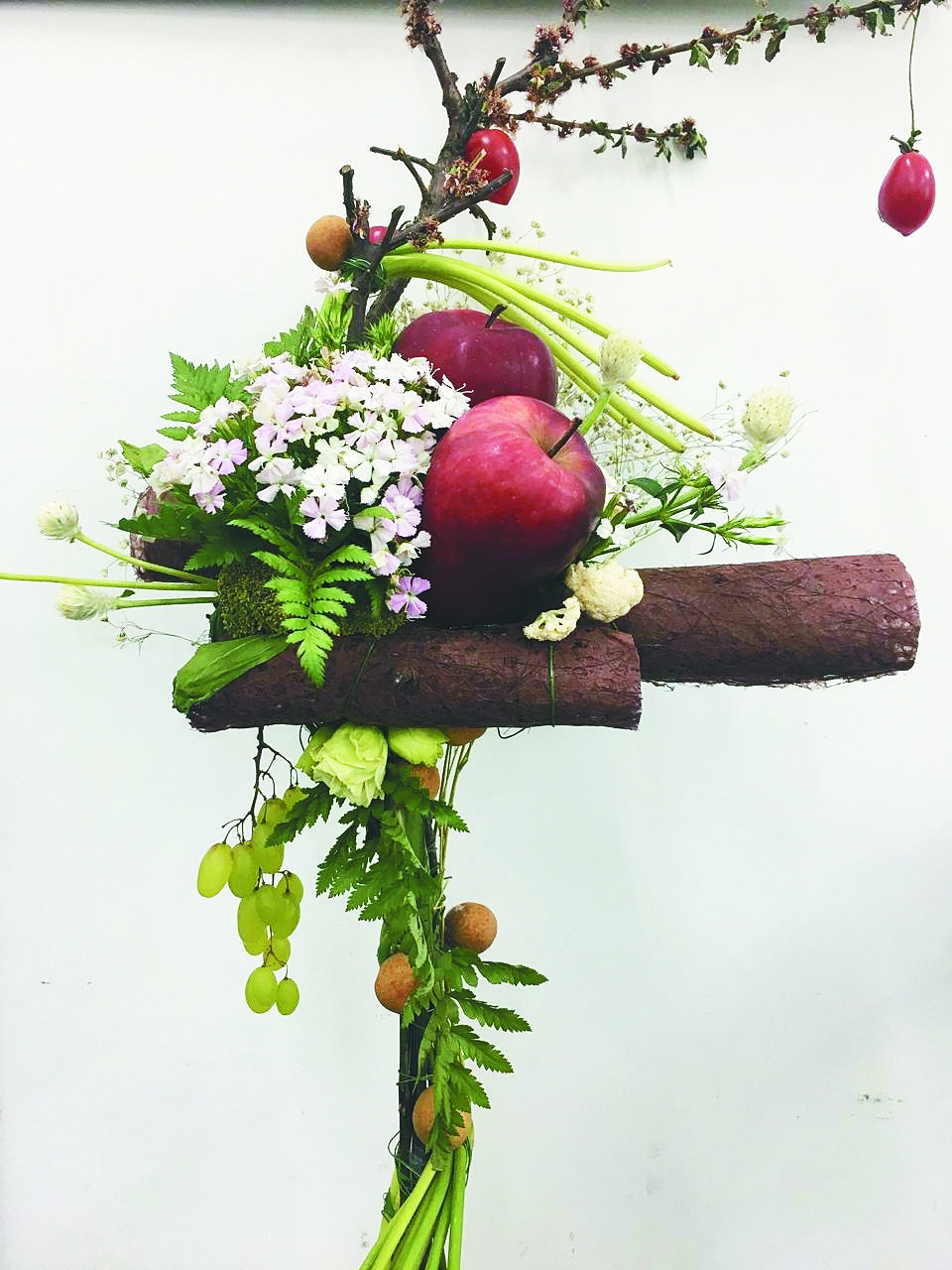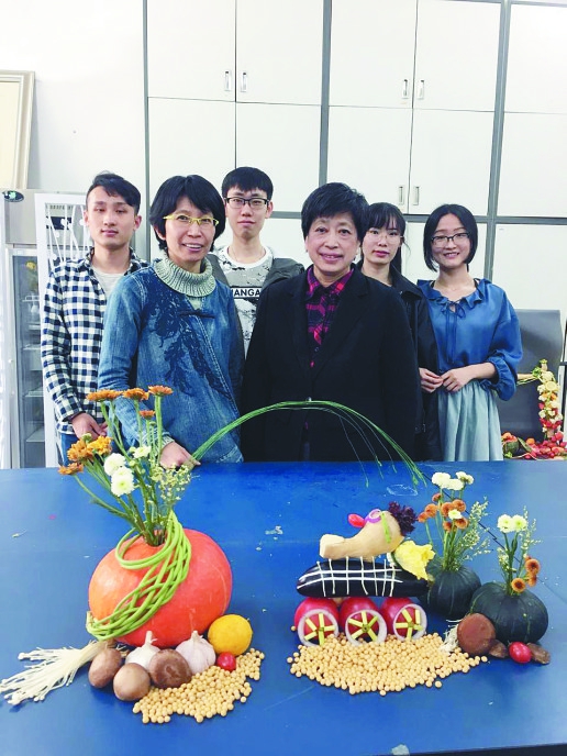 生活报讯(记者朱莉文/摄)13日是母亲节,你给妈妈准备好礼物了吗?如果你到现在还没想出好点子,那就快来和东北林业大学的老师们学习果蔬插花吧。要知道,这种礼物不仅能向妈妈表达爱意,欣赏完了还能直接吃掉,完全不用担心妈妈数落你瞎花钱。 不同于传统插花,“果蔬插花”的制作过程不需要名贵花材。黄瓜、柿子、芹菜、南瓜、大葱、大蒜、生姜、苹果、辣椒、洋葱、西蓝花……这些水果摊、菜市场随处可见的普普通通的食物,就可以成为“果蔬插花”的装饰品。据我省知名插花花艺专家、东北林业大学园林学院教授岳桦介绍:“中国的插花艺术有两千多年的历史,果菜插花是插花艺术中的一个类别,也是插花中最常用的一种形式,因为极易取材,越来越受到人们的喜爱。” 虽然取材容易,可插花毕竟是一门需要学习的艺术,普通人在家该怎么做呢?对此,东北林业大学园林学院的贾军老师特意为读者准备了几个易操作的插花技巧。“果蔬插花需要注意上轻下重、高低错落、虚实结合的构图法则,比如茄子、南瓜这类颜色深、体积大的果菜,可以放在下面,起到稳定重心的作用。而小西红柿、草莓、芹菜这类质地轻的食材可以放在作品上方起到美化作用。豇豆、蒜苔一类线条形蔬菜可以盘卷或编织成各类造型,以增强作品的趣味性。樱桃、芒果、柠檬、苹果等颜色漂亮的水果可丰富作品的色彩。另外,果蔬的高度、前后要有一定的空间变化,切忌平面化。”贾军老师介绍说。 据岳桦老师介绍,果蔬插花不仅仅是一种愉悦身心的生活艺术,也是一种亚健康修复疗愈的重要方式,她非常欢迎大家都来尝试。“在中国教育部的网站、爱课程网站、中国慕课网,都有一门课叫‘室内花卉与装饰’,我在那上面有五节课的课程,这些课程都是免费向公众开放的。其中有两节就是专门讲果菜插花的,我在那里面做了很多案例,大家感兴趣可以去学习。”岳桦老师说。 前排左一是贾军老师,前排右一是岳桦老师