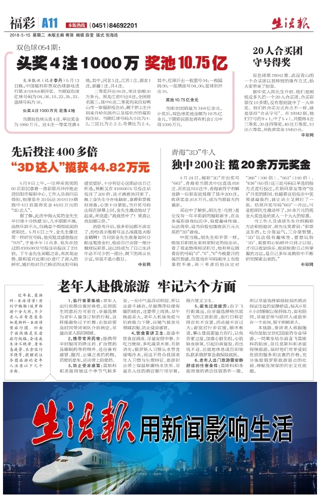 先后投注400多倍“3 D 达人”揽获44.82万元