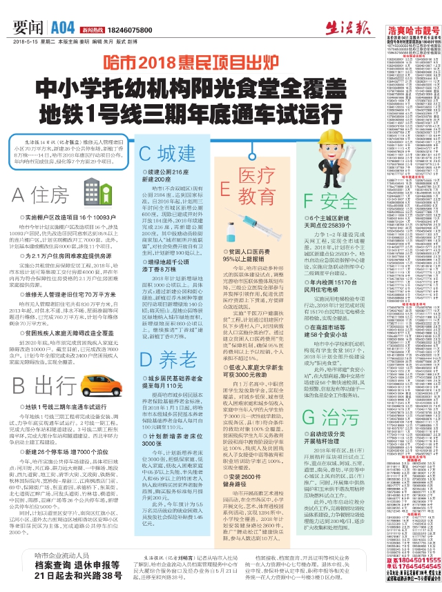 中小学托幼机构阳光食堂全覆盖地铁1号线三期年底通车试运行
