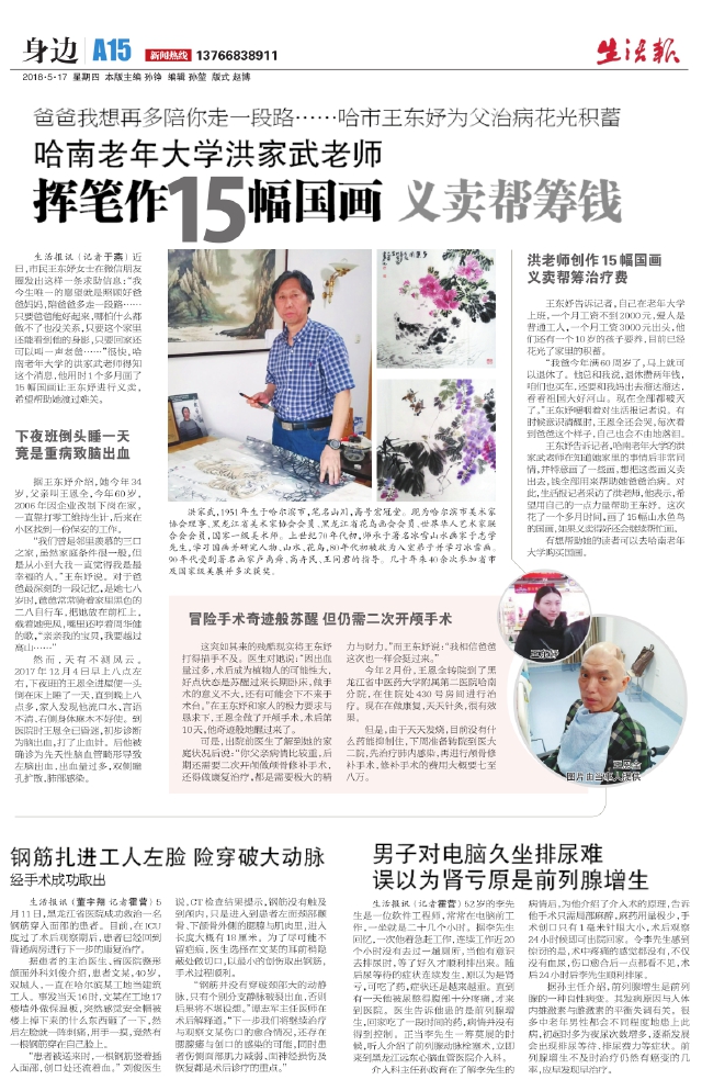 哈南老年大学洪家武老师挥笔作15幅国画义卖帮筹钱