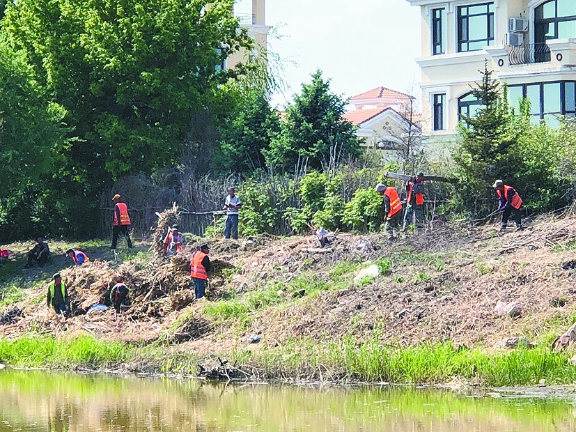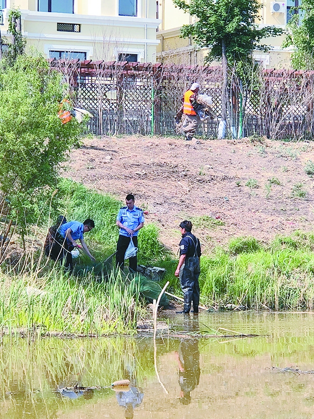 工作人员在清理垃圾和杂草 居民圈地种菜点位已被工作人员清理并推平 清理渔网 生活报讯(记者丁燕文/摄)18日,本报报道了银水湾周边存在居民私自开垦土地种菜,侵占公共空间等问题,引起了相关部门的高度重视。19日,生活报记者再次来到银水湾看到,本报报道的居民圈地种菜点位已清理完毕。据哈尔滨市松北区相关部门工作人员介绍,预计本月26日初步完成银水湾水系沿岸整治工作。 当天14时许,记者来到银水湾附近的科技四街与世贸毕索小镇交会路段。十余名工作人员正在对河岸上的垃圾、杂草进行清理和搬运。三名工作人员正在清理水中的渔网。 据松北区相关部门工作人员介绍,13日,按照松北区政府统一部署,松北区启动了银水湾沿线科技创新城周边水系杂草、垃圾的全面清理工作。前期进行整体排查,预估需要清理总工作量为杂草8350立方米,生活垃圾约2130立方米。截至19日记者发稿时,共清理杂草4580立方米,生活垃圾1890立方米,出动人员760人,拉运120台次。 15时许,记者来到银水湾水域西侧与世贸康桥郡交口处。一辆铲车正在清理周边的残土和“私家菜园”。记者看到,本报18日报道的居民圈地种菜点位均已清理完毕。“昨天下午来了大铲车,清理被占的地和搭建的棚子,说以后要进行绿化。”居民王女士告诉记者。截至16时记者离开时,道路东侧近500米的路段,被居民圈占的区域,已被全部推平。 松北区相关部门工作人员告诉记者,本报文章刊发后,松北区在加强对银水湾环境卫生整治的同时,执法部门对银水湾西侧、银水湾路口小开荒地及违章构筑物也进行了同步清理。截至目前,共出动执法人员50余人,工程车和货运车辆各1台,各类执法车辆6台,铲车1台,共清理平整小开荒地近6000平方米,拆除窝棚、彩钢房12处。 采访中,银水湾沿线一些居民呼吁,在相关部门加强监管的情况下,居民们也要提高自身素质,共同维护银水湾的环境。 对于多数居民关注的银水湾沿岸部分别墅居民恶意侵占河床及绿地的行为,松北区相关部门工作人员表示,目前工作人员正在对别墅居民的私建面积进行统计,不久后将进行大规模集中清理。 对此,本报将继续关注。