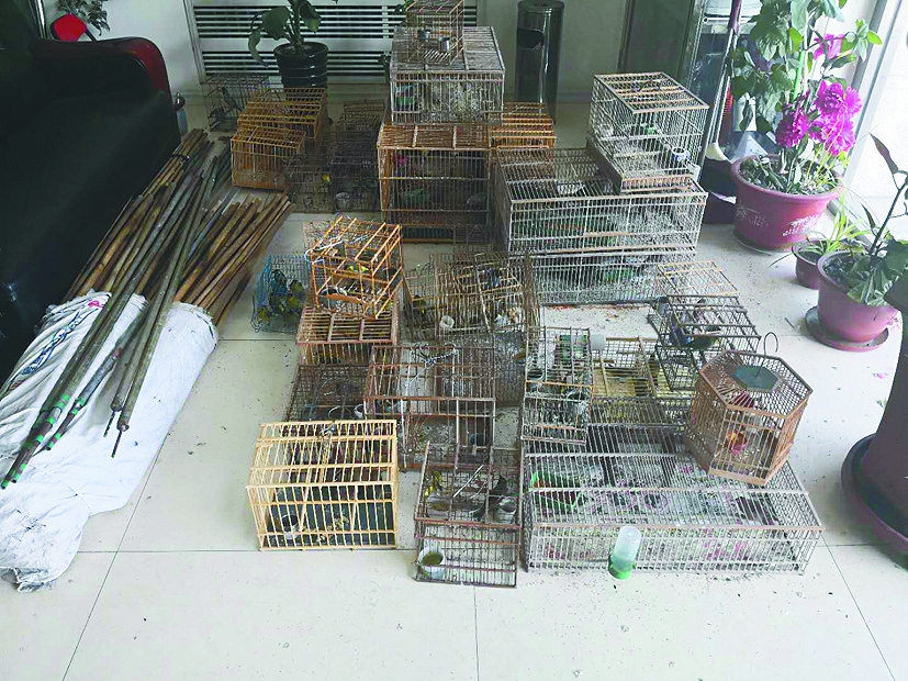 生活报讯(记者王悦)此时正值候鸟迁徙季节,拥有良好生态环境的哈尔滨成为大批候鸟的栖息地,一些不法分子却把本应自在飞翔的鸟儿关在笼里售卖。20日,哈市森林公安局突击检查双城区鸟市,一家鸟店的老板在看到警察后关门就跑,经警方检查发现,该店有110只野生鸟。 20日9时许,哈市森林公安局和双城区森林公安局对双城区鸟市进行突击检查,据现场民警介绍,一家鸟店的老板在看到警察后,迅速将鸟店的卷帘门关闭后逃跑,民警见此状况对该店进行检查,发现店里有110只野生鸟。对此,双城区森林公安局已准备刑事立案,并暂时收养野生鸟,经鸟类专家鉴定后予以放飞。此外,在此次行动中,警方又抓获一名鸟贩,查获8只黄鸟,对其罚款2400元。