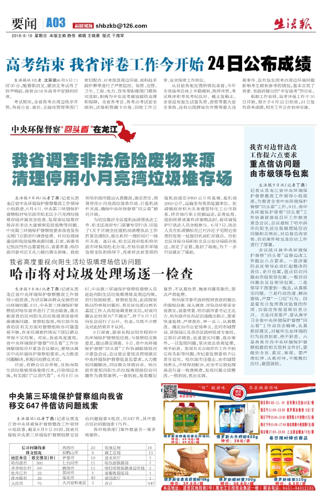 中央第三环境保护督察组向我省移交647件信访问题线索