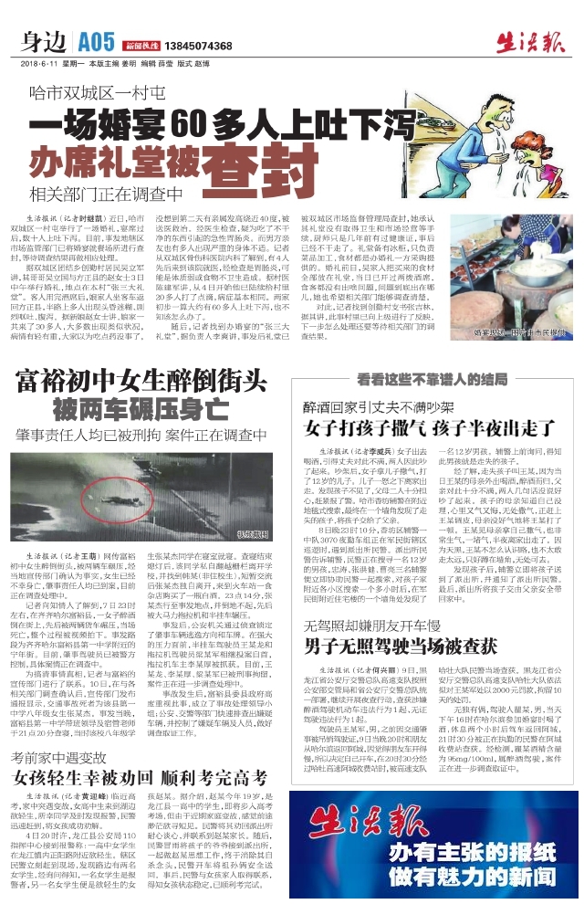富裕初中女生醉倒街头被两车碾压身亡