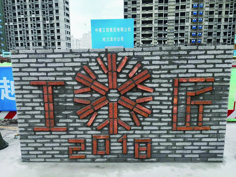 生活报讯(记者李丹文/摄)小青砖、水泥,原本是普通的建筑物资,在砌筑工人的手里,经过六小时的专业操作,一堵3.15×1.69米造型展示墙呈现出来,“雪花”“2018”“工匠”花样精美。7月3日,市建设交通物流工会在中建二局四公司黑龙江分公司施工现场举办2018年哈尔滨市砌筑工职业技能大赛。12支代表队进入决赛,36名技术能手在这里大显身手、展示风采。