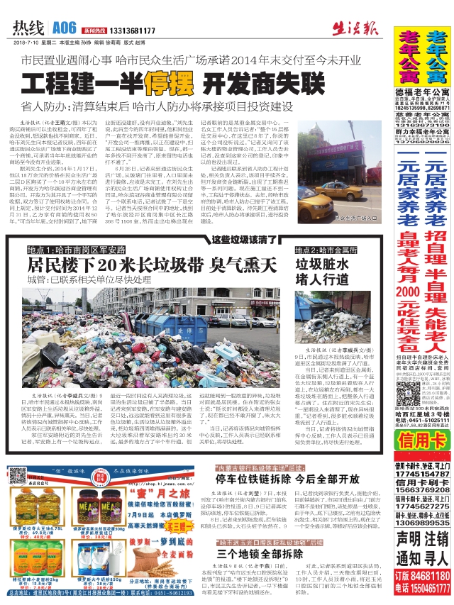 生活报讯(记者李威兵文/摄)9日,市民通过本报热线反映,哈市道里区金属街垃圾堆满了人行道。