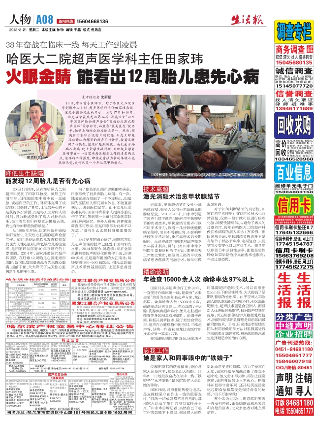 哈医大二院超声医学科主任田家玮火眼金睛能看出12周胎儿患先心病