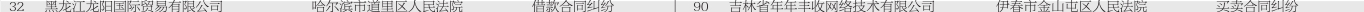 生活报讯(记者孙海颖)20日,黑龙江省高级人民法院向社会发布“雷霆行动”第三批失信被执行人名单,涉及哈尔滨市冰城牧业有限公司、黑龙江太平湖房地产开发有限公司等失信被执行企业。 黑龙江省决胜“基本解决执行难”雷霆行动第三批失信被执行人名单 序号名称 法院 案由 1哈尔滨元盛房地产开发股份有限公司 哈尔滨市阿城区人民法院 买卖合同纠纷 2哈尔滨市冰城牧业有限公司 哈尔滨市香坊区人民法院 买卖合同纠纷 3兰西哈金龙房地产开发有限公司 望奎县人民法院 借款合同纠纷 4秦皇岛市弘企房地产开发有限公司 哈尔滨市南岗区人民法院 借款合同纠纷 5鸡西市振兴矸石砖瓦有限责任公司 鸡西市梨树区人民法院 劳动争议 6黑龙江省渤海金龙房地产开发有限公司 望奎县人民法院 借款合同纠纷 7黑龙江金山峰经济技术合作有限公司 哈尔滨市南岗区人民法院 合同纠纷 8黑龙江省龙银投资担保有限责任公司 哈尔滨市南岗区人民法院 借款合同纠纷 9哈尔滨龙华盛房地产开发有限公司 北安农垦法院 合同纠纷 10日照市金爵王珠宝有限公司 红兴隆农垦法院 借款合同纠纷 11哈尔滨温氏房地产经纪咨询有限责任公司 哈尔滨市南岗区人民法院 合同纠纷 12开原市金丰工贸有限公司 七台河市新兴区人民法院 买卖合同纠纷 13黑龙江战友房地产开发有限公司 哈尔滨市中级人民法院 建设工程合同纠纷14黑龙江省天碧房地产开发有限公司 哈尔滨市中级人民法院 合同纠纷 15哈尔滨佰强房地产经纪咨询有限公司 哈尔滨市道里区人民法院 借款合同纠纷 16山东省高唐蓝山集团总公司 哈尔滨市中级人民法院 买卖合同纠纷 17哈尔滨市隆顺小额贷款有限公司 哈尔滨市中级人民法院 借款合同纠纷 18同江市恒旭房地产开发有限公司 同江市人民法院 民间借贷纠纷 19哈尔滨瑞辉医药连锁有限公司 哈尔滨市呼兰区人民法院 借款合同纠纷 20北京融昌航投资咨询有限公司 哈尔滨市中级人民法院 合同纠纷 21青岛凤翔新材料有限责任公司 嫩江县人民法院 买卖合同纠纷 22七台河钿源房地产开发有限公司 双鸭山市尖山区人民法院 借款合同纠纷 23黑龙江盛昌房地产开发有限公司 哈尔滨市呼兰区人民法院 合同纠纷 25黑龙江鼎盛尚居房地产开发有限公司 通河县人民法院 房屋买卖合同纠纷 26鹤岗市东山房地产开发有限责任公司 鹤岗市工农区人民法院 借款合同纠纷 27黑龙江裕安房地产开发有限公司 哈尔滨市中级人民法院 建设工程合同纠纷 28江苏中顺建设集团有限公司 大庆市萨尔图区人民法院 买卖合同纠纷 29齐齐哈尔恒鑫石材有限公司 齐齐哈尔市碾子山区人民法院 民间借贷纠纷 30黑龙江中帅拍卖有限公司 牡丹江市中级人民法院 拍卖成交确认合同 31黑河市豆豆广告装饰有限责任公司 黑河市爱辉区人民法院 买卖合同纠纷 32黑龙江龙阳国际贸易有限公司 哈尔滨市道里区人民法院 借款合同纠纷 33林甸县万盛亿邦购物广场有限公司 林甸县人民法院 房屋买卖合同纠纷 34大庆隆源房地产开发有限公司 大庆市红岗区人民法院 房屋买卖合同纠纷 35黑龙江太平湖房地产开发有限公司 哈尔滨市道里区人民法院 房屋买卖合同纠纷 36江苏中盛建设集团有限公司 大庆市龙凤区人民法院 建设工程合同纠纷 37哈尔滨荣鹏房地产经纪有限公司 哈尔滨市道里区人民法院 居间合同纠纷 38黑龙江银手杖印务有限公司 哈尔滨市香坊区人民法院 买卖合同纠纷 39地球卫士(绥化)环保新材料有限公司 绥化市中级人民法院 借款合同纠纷 40地球卫士环保新材料股份有限公司 绥化市中级人民法院 借款合同纠纷 41信德控股集团有限公司 绥化市中级人民法院 借款合同纠纷 42黑龙江天盛房地产开发有限公司 安达市人民法院 借款合同纠纷 43黑龙江方略房地产开发有限公司 林甸县人民法院 房屋买卖合同纠纷 44中太建设集团股份有限公司 鸡西市鸡冠区人民法院 买卖合同纠纷 45绥芬河中海房地产开发有限公司 绥芬河市人民法院 借款合同纠纷 46哈尔滨永吉房地产开发有限公司 哈尔滨市道外区人民法院 合同纠纷 47哈尔滨居泰隆家居装饰有限公司 哈尔滨市道里区人民法院 合同纠纷 48哈尔滨王景房地产综合开发有限公司 哈尔滨市道外区人民法院 借款合同纠纷 49中跃建设集团有限公司 哈尔滨市道里区人民法院 劳务合同纠纷 50鑫晟财富(北京)投资管理有限公司 哈尔滨市道里区人民法院 合同纠纷 51焦作市鑫豫风机有限公司 哈尔滨市香坊区人民法院 买卖合同纠纷 52哈尔滨宝融房地产开发有限公司 哈尔滨市道里区人民法院 服务合同纠纷 53大连丰鑫服装有限公司 五大连池市人民法院 劳务合同纠纷 54哈尔滨德峰投资咨询有限公司 哈尔滨市道外区人民法院 劳动争议 55哈尔滨工大集团股份有限公司 哈尔滨市香坊区人民法院 合同纠纷 57襄阳安吉昌汽车服务有限公司 大庆高新技术产业开发区人民法院 借款合同纠纷 58伊春市嘉泰天然气有限公司 哈尔滨市道外区人民法院 借款合同纠纷 59哈尔滨伟峰房地产开发有限公司 哈尔滨市香坊区人民法院 借款合同纠纷 60哈尔滨明悦房地产开发有限公司合众分公司哈尔滨市道里区人民法院 借款合同纠纷 61哈尔滨晟源铝材有限公司 哈尔滨市平房区人民法院 买卖合同纠纷 62江苏欣荣科技发展有限公司 双鸭山市中级人民法院 买卖合同纠纷 63南通