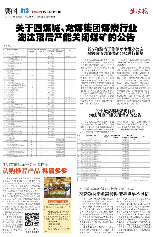 关于四煤城、龙煤集团煤炭行业淘汰落后产能关闭煤矿的公告