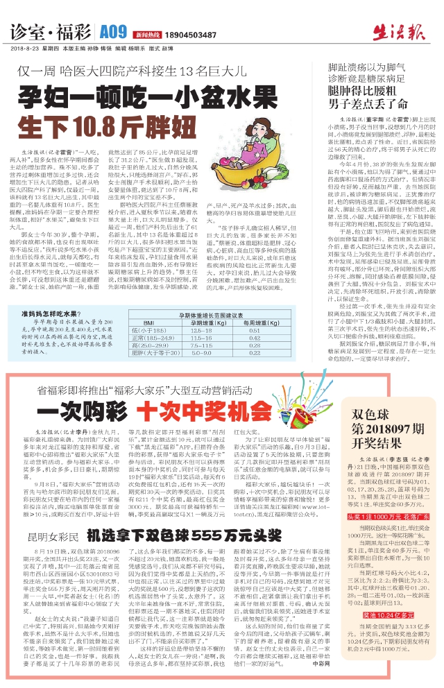 孕妇一顿吃一小盆水果生下10.8斤胖妞