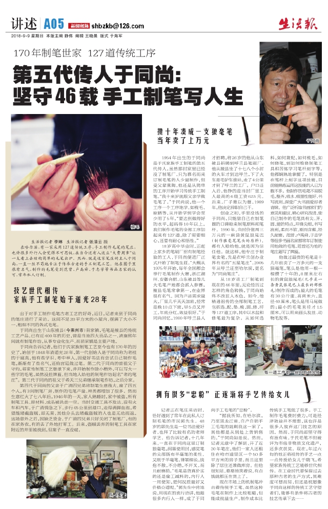 第五代传人于同尚:坚守46载手工制笔写人生