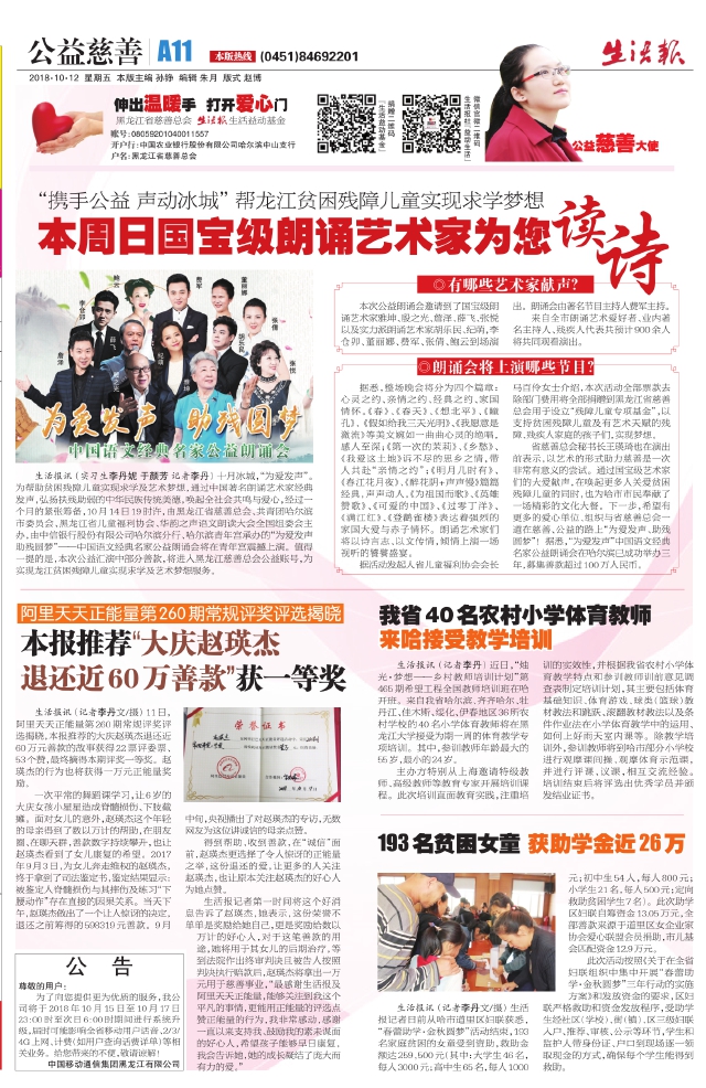 本报推荐“大庆赵瑛杰退还近60万善款”获一等奖