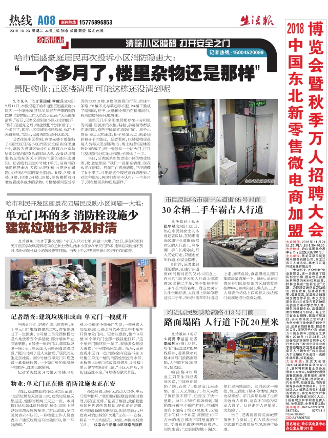 单元门坏的多 消防栓设施少建筑垃圾也不及时清
