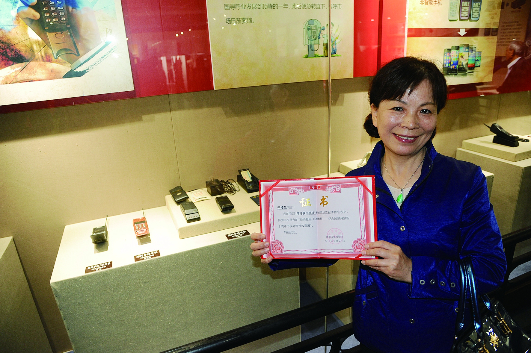 生活报记者王雪莹生活报记者张清云摄 在上世纪90年代的公共场所,“有事没事摸摸腰”是不少配有手机的人一个习惯性动作。原因很简单,他们就是希望通过“摸摸腰”,为自己吸引来周围一片艳羡的目光。毕竟早在20多年前,能斥巨资买上一部手机,是件令人极其骄傲的事情。 别看现在的智能手机无所不能,但当市民在省博物馆的“物换星移几度春秋——纪念改革开放四十周年市民老物件收藏展”中,看到一部配有持机证、充电器、备用电池等9套物件的摩托罗拉Ⅱ手机时,仍不禁驻足感慨并回忆起那段时光。 据这部手机的收藏者、今年56岁的于桂兰介绍,手机是上世纪90年代初她公公买的,当时花了一万多块钱,是个实打实的大件儿。“手机上有天线,下翻盖,拿着特别沉,和砖头一样。”于桂兰笑言,这是他们家的第一部手机,所以公公天天都把它别在腰上,走到哪儿都有意无意地让它亮个相,“老爷子在企业上班,平时也做点小生意,为了联系业务方便就买了手机。我记得刚把它带回家时,街坊邻里都过来挨个看,特别羡慕。老爷子也自豪,要是穿衬衫出门,他就把衣服掖到裤子里,把手机露外面。要是穿外套出门,他就不系扣子,反正就得让大家都看见。” 与现在年轻人网上充话费不同,当年交个手机费不仅要亲自跑到电信局,而且还必须得带上哈尔滨市电信局发的持机证,“持机证上有机主姓名和每次的缴费记录。”于桂兰说,虽然这些年经历了多次搬家,但她一直都舍不得把这部笨重的手机给扔掉,因为它不仅藏着一代人的集体记忆,更记录着我国经济和技术飞速发展的历史。