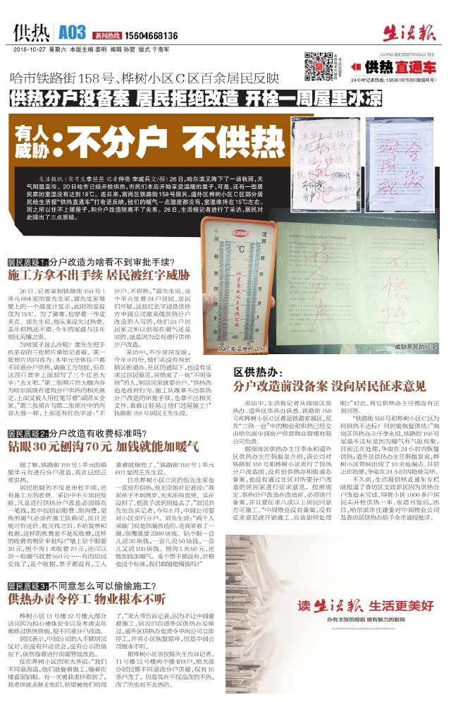 供热分户没备案居民拒绝改造开栓一周屋里冰凉 有人威胁:不分户不供热