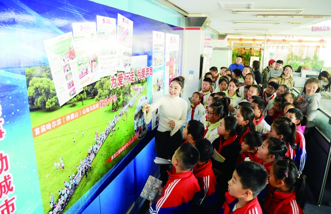 生活报讯(记者朱莉姜轶东/文李巍/摄)5日,生活报第十一期小记者团正式开营,哈尔滨市江沿小学的50名小学生来到位于哈市道里区地段街的生活报办公大楼,领取了神圣的记者证。这意味着,从今天起,他们正式成为“持证上岗”的生活报小记者。未来一年,他们将走进采访现场、参加公益活动、学习写作技巧、锻炼独立精神,用手中的纸笔记录这座城市的变化和发展。 “记者是怎么采访的?”“报纸是怎么出版的?”“如何用文字记录城市变化?”“如何守望社会责任、帮助他人?”在参观完生活报采编平台后,50名小记者纷纷表达了自己的好奇。为解答这些疑问,生活报记者老师通过视频、图片、文字等方式,向小记者们详细讲解了《生活报》报史、新闻采编流程及报纸印刷工艺,一点一点地揭开了《生活报》的神秘面纱。 在编辑室的展示板上,悬挂着《生活报》今年刊发的重磅新闻,面对小记者们崇拜的目光,记者老师鼓励道:“如果你们的新闻稿写得足够优秀,也会被刊登在报纸上。”随后,记者老师带领小记者们来到融媒体中央厨房,在这里,大家看到了网络新闻的推送过程,新媒体编辑的工作内容,也了解到网络新闻的高效传播速度。 过去10年间,已有十期生活报小记者在这里快乐的学习、成长,如今他们都已成长为正义、有责任感的少年。从第一期开始,生活报小记者团就致力于开展丰富多样的活动,为同学们提供全方位的成长平台,来增强大家的社会责任感、创新能力和实践能力,从而提高大家的综合素养。在生活报“持证上岗”的小记者们,也均在各式采访和社会活动中学到了丰富的新闻知识,锻炼了表达能力。展望未来,小记者团的初衷未改。一份报纸、一份责任,生活报大家庭欢迎你们加入。 三年3班学生于晋说:“能成为生活报小记者我特别高兴,以前,我的课外时间都用来学奥数、英语了。现在我可以和同学们一起走到户外,走到城市的各个角落,去采访更多的人,帮助更多的人,这让我感觉特别骄傲。” 五年2班学生孙主宝说:“这次小记者团开营,我是我们班第一个报名的。我的爸爸、妈妈、奶奶、姥姥每天都会看生活报,我希望在这里好好学习,提升自己的写作和人际交往能力。希望有一天,我写的文章也能登在生活报上,让我的家人看到。” 五年3班学生李一诺说:“每当我在报纸上看到记者叔叔阿姨们写的一篇篇精彩报道,我就羡慕不已,心里由衷敬佩!今天我如愿成为了生活报小记者,深感自豪的同时,也深知其中责任。未来,我会严格要求自己,认真向记者叔叔阿姨学习,多看多读多写,努力提高自己的写作水平。用心去观察生活,宣传报道身边的好人好事,做一名合格的小记者。”