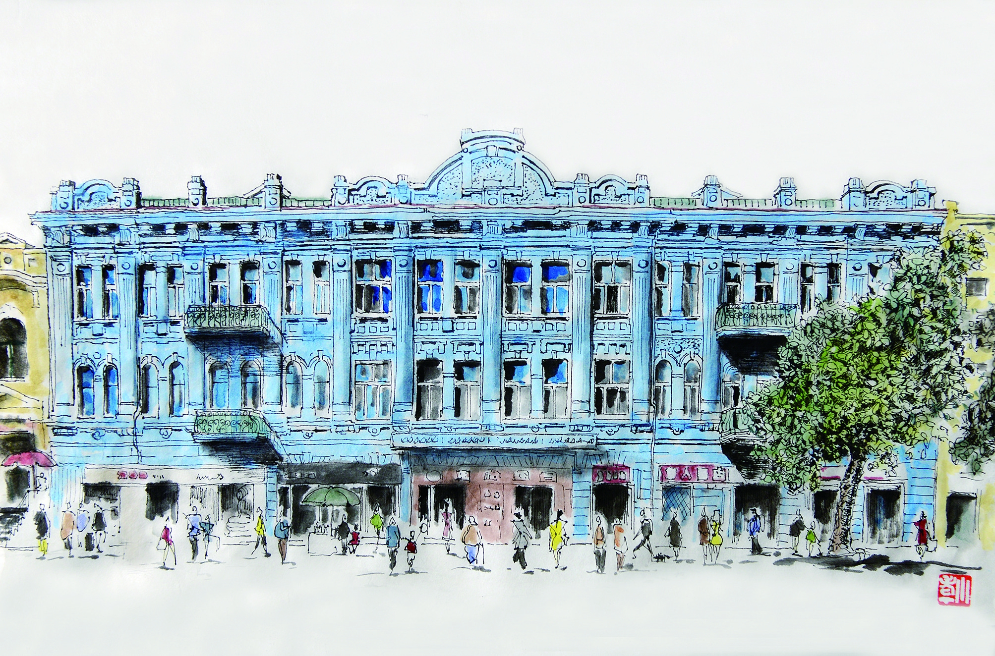 绘画:丁毅 在繁华热闹的东大直街上,这栋三层楼房非常引人瞩目。该建筑虽然已有100多年的历史了,如今依然气度不凡。