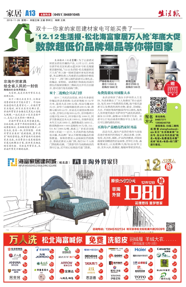“12.12生活报·松北海富家居万人抢”年底大促数款超低价品牌爆品等你带回家