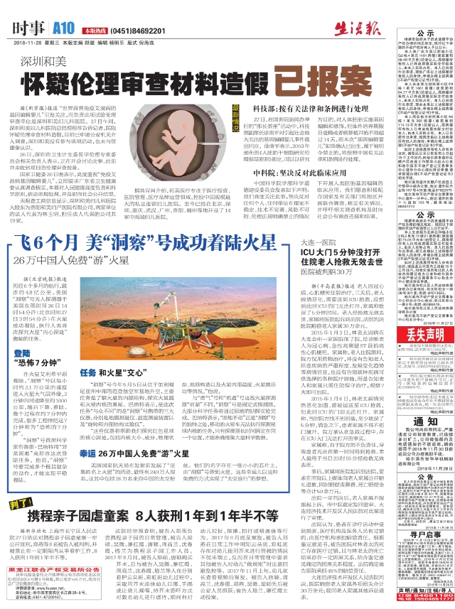 飞6个月美“洞察”号成功着陆火星