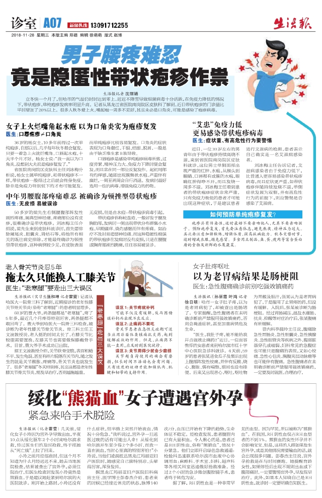 男子腰疼难忍竟是隐匿性带状疱疹作祟