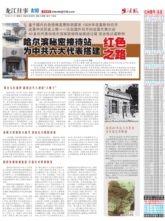 哈尔滨秘密接待站为中共六大代表搭建红色之路