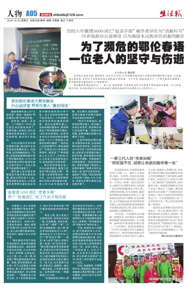 为了濒危的鄂伦春语一位老人的坚守与伤逝
