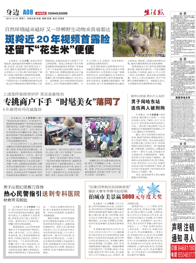 生活报讯(记者王萌)我省自然环境改善,越来越多的珍稀野生动物来报道,东北虎,东北豹,现在斑羚也来了。24日,据东北虎豹国家公园管理局东宁分局相关人士介绍,他们首次拍到了国家二级重点保护野生动物斑羚的视频。 这两段视频影像显示,12月16日,一只斑羚在东宁分局朝阳沟林场布设的一处远红外相机前悠闲地欣赏着石穴周围的景色,还调皮地在石穴里留下了自己的排泄物。黑龙江省林业厅东宁市林业局朝阳沟林场副场长李刚说,“在林场工作十几年没看过这种动物,也是头一回。”据他介绍,视频发现的地点位于施业区的山上,周围是石砬子,说明这种羊能攀岩,留下的粪便呈颗粒状,花生米大小。这种粪便,2016年时他曾在区域内捡到过,当时不清楚是哪种动物的。今年10月和11月,在附近一百多米林间,还曾拍到过斑羚的照片。 东北虎豹国家公园管理局东宁分局副局长董春生说,经东北林业大学猫科动物研究中心常务副主任姜广顺教授研究认定,这次拍摄是近20年来东北地区首次捕捉到野生斑羚视频影像。斑羚又称青羊,是偶蹄目斑羚属的一种高山动物,善于在悬崖绝壁和深山幽谷之间奔走,是国家二级重点保护野生动物,被列为濒危物种红皮书易危物种。 据李副场长介绍,斑羚是虎豹的捕猎对象,说明该区域存在一个较完整的生态系统,巧合的是,就在11月10日同一地点,还拍摄到一段东北豹活动的影像。相关人士表示加强保护,但不干预野生动物的捕猎行为。李副场长表示,不排除斑羚来自俄罗斯境内的可能。