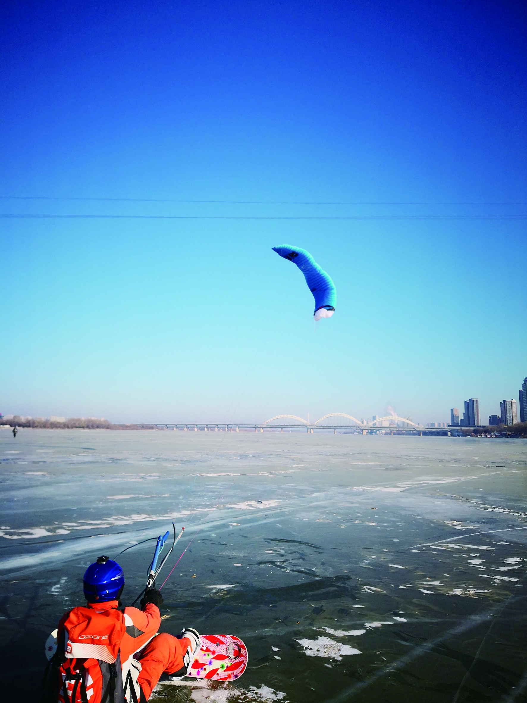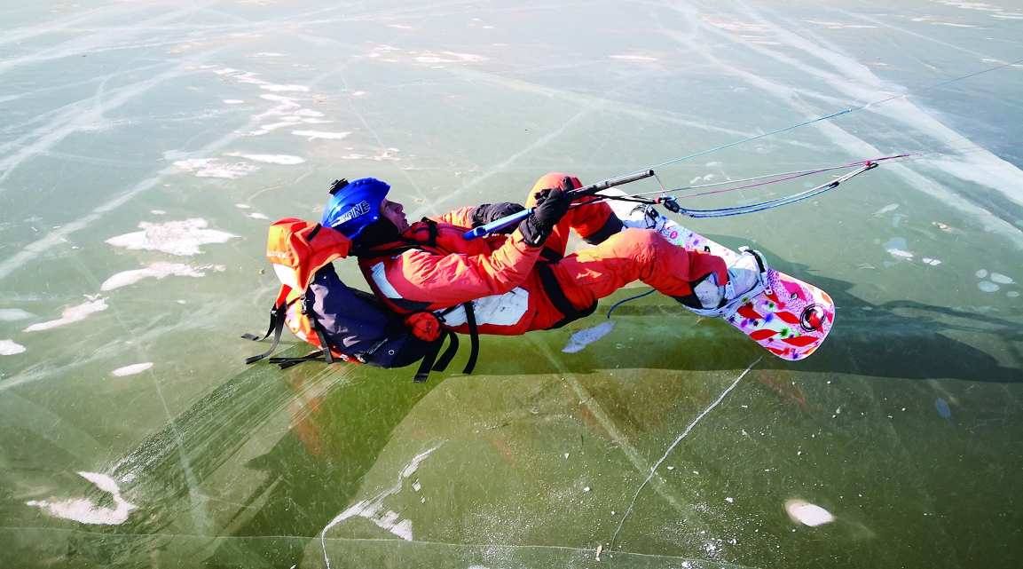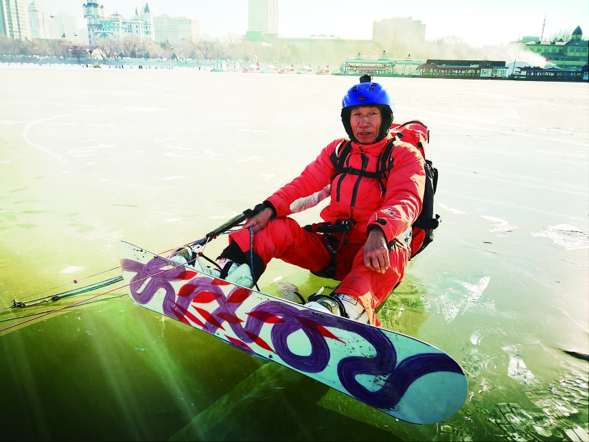 文/摄生活报记者张清云 在冰封的松花江上放风筝和滑冰大家都见过。然而,如果把风筝和滑冰结合在一起,利用风筝的动力穿着滑雪板,在冰封的松花江冰面上玩风筝滑冰就非常有意思了。不仅玩者陶醉,就连在现场采访的记者也为之惊叹。 今天给大家介绍的这位,名字叫鞠殿臣,68岁的他仍在挑战极限,跌倒了爬起来接着滑…… 近日,在松花江哈尔滨市区段冰封的江面上,有几位风筝滑雪爱好者在滑冰,总摔跟头的鞠殿臣就是其中一个。前几天江面上没下雪时光滑如镜,本应该在下雪以后才能玩的风筝滑雪,他一反常态,非要体验一下风筝滑冰的乐趣。记者在现场看到,在不到一小时内,他先后摔倒七八次,但是他就是不服输,摔倒了爬起来接着再滑,就这样等到收拾风筝时早已是汗流浃背了。 据鞠殿臣介绍,他退休后一开始学了几年滑雪,又玩了一年风筝。一次偶然的机会在江北市政府广场看见有人练习风筝滑雪,他就问人家,他的年纪能不能玩?对方告诉他,如果你没有高血压等疾病就能玩。2017年12月份,他花了近万元买了一套装备开始练习。一年下来,经过刻苦练习,他还真会了。“玩风筝滑雪或者是玩风筝滑冰,最关键的是熟练掌握操作技术,必须具备不服输的精神,一次次刻苦练习,时间长了,自然就熟能生巧了。玩风筝滑冰最大的乐趣就是挑战自我,锻炼手脑协调能力,一次次陶醉在快乐和喜悦之中。”鞠殿臣一边擦汗一边开心地说。