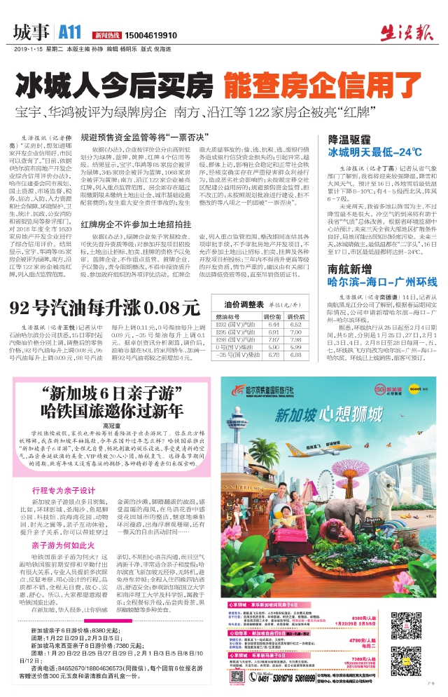 高冠童 学校陆续放假,家长也开始筹划着陪孩子出去游玩了。你在北方棉袄棉裤,我在新加坡半袖拖鞋,今年在国外过年怎么样?哈铁国旅推出“新加坡亲子6日游”,全程无自费,畅玩刺激的娱乐设施,享受更清新的空气,品尝垂涎欲滴的美食,VI P精致20人小团,酷航直飞。选择春节期间 的团期,既有年味又没有春运的拥挤,各种精彩等着亲们来探索哟。 行程专为亲子设计 新加坡亲子游景点多且密集,比如,环球影城、圣淘沙、鱼尾狮公园、科技馆、滨海湾花园、动物园、时光之翼等,亲子互动体验,提升亲子关系,你可以带娃穿过金黄的沙滩,脚踏翻滚的波浪,感受温暖的海风,在鸟语花香中感受花园城市的整洁,惬意地乘船环河漫游,出海浮潜观珊瑚,还有一整天的自由活动时间…… 亲子游为何如此火 哈铁国旅亲子游为何火?这跟哈铁国旅前期安排和辛勤付出有很大关系,专业人员提前多次踩点、反复考察、用心设计的行程,品质都不错,全程无自费,放心、实惠、舒心。所以,大家都愿意跟着哈铁国旅出游。 在新加坡,华人很多,让你倍感亲切,不用担心语言沟通,而且空气清新干净,非常适合亲子和度假;哈尔滨直飞新加坡无经停、无转机,避免舟车劳顿;全程入住四晚四钻酒店,舒适安全;参观新加坡国立大学和南洋理工大学及科学馆,寓教于乐;全程餐标升级,品尝肉骨茶、黑胡椒螃蟹等多种美食。 新加坡亲子6日游价格:8380元起; 团期:1月22日/29日,2月3日/5日; 新加坡马来西亚亲子8日游价格:7380元起; 团期:1月20日/22日/25日/27日/29日,2月1日/3日/5日/8日/10日/12日; 咨询电话:84652670/18804636573(同微信),每个团前6位报名游客赠送价值300元玉泉和谐清雅白酒礼盒一份。