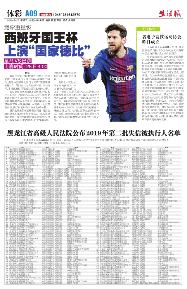 黑龙江省高级人民法院公布2019年第二批失信被执行人名单