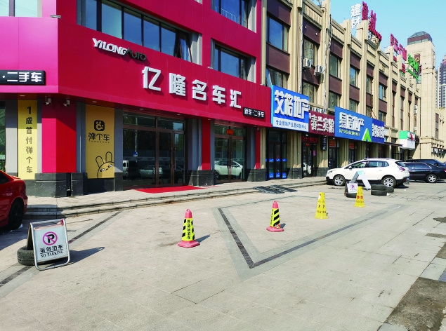 生活报讯(记者张宇驰文/摄)15日,市民王女士向记者反映,在哈尔滨市道里区群力朗江路与群力第五大道交口,有商家私自设立临时停车桩霸占人行道,每次市民途经此处时都要绕桩行走,给出行带来不便!