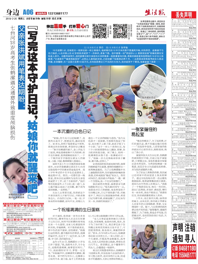 父亲张洪斌用笔表达期盼:“写完这本守护日记,姑娘你就醒来吧”