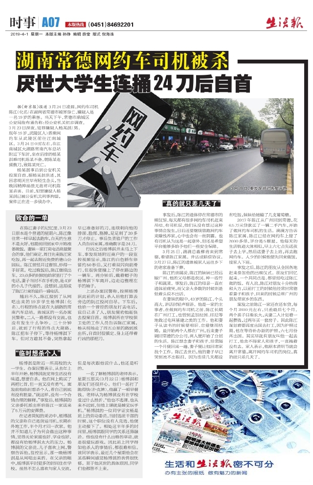 湖南常德网约车司机被杀厌世大学生连捅2 4 刀后自首