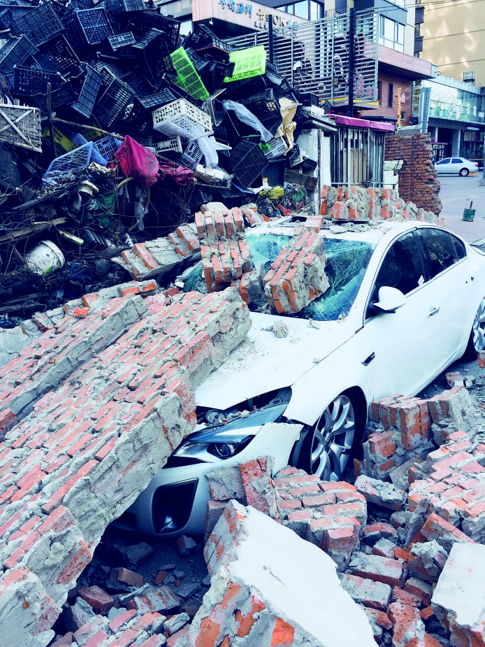 生活报讯(记者时继凯文/摄)9日晚,哈市道里区河山街12号旁,一个位于俩小区中间的破旧房屋临街墙体发生大面积坍塌,紧邻墙边停放的两辆崭新的轿车被砸墙下,所幸事故没有造成人员伤亡。 10日上午,记者在现场看到,事发观江首府与财智时代两处高层楼宇小区中间区域。现场有一片破旧的老房子,临街的红砖水泥墙体有2米多高,已发生近10米长的坍塌,墙内大量废旧水果框和杂物堆积如山,超过墙体高度。房屋大门禁锁,院内好像是一处已经关门的废品收购站。两辆轿车被倒塌墙体砸在下面,其中一辆白色别克车从前到后完全被大块水泥砸中,已经变形。另一辆白色福特轿车,车体后部车损严重,前部没有被砸到。 据对面楼的居民讲,9日21时30分许,这里突然传来一阵轰隆隆的巨响,楼上很多居民还以为发生了地震。有居民告诉记者,今年开春的时候,有人就发现这里的墙体有很大的裂缝,住在附近熟悉情况的人,一般都不敢在这里停放车辆。而这片破房子已经在这里存在很多年了,开发这里盖楼时,不知为何这些破房子一直遗留至今。 随后,记者从辖区正阳河街道办哈木器社区获悉,这片破房子确实是遗留下来的,社区对这里进行防火等检查时,一直没有见到这里的主人,院内存放大量杂物,像是收购站。事发后,辖区警方已联系被砸车辆车主,目前针对这处破房子的主人和墙体倒塌原因等情况,相关部门正在进一步工作中。 事故现场
