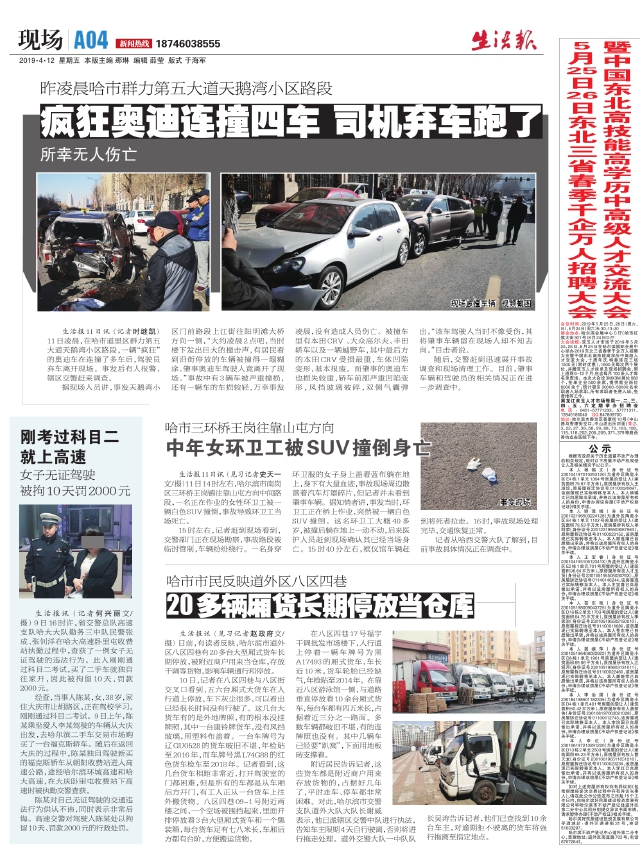 疯狂奥迪连撞四车司机弃车跑了