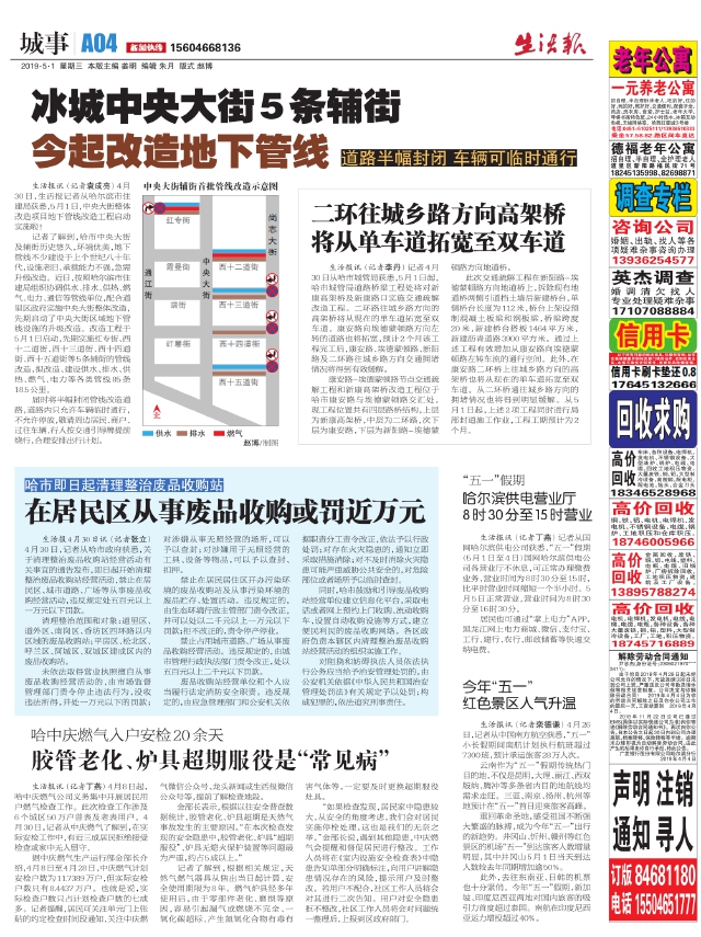 冰城中央大街5条辅街今起改造地下管线