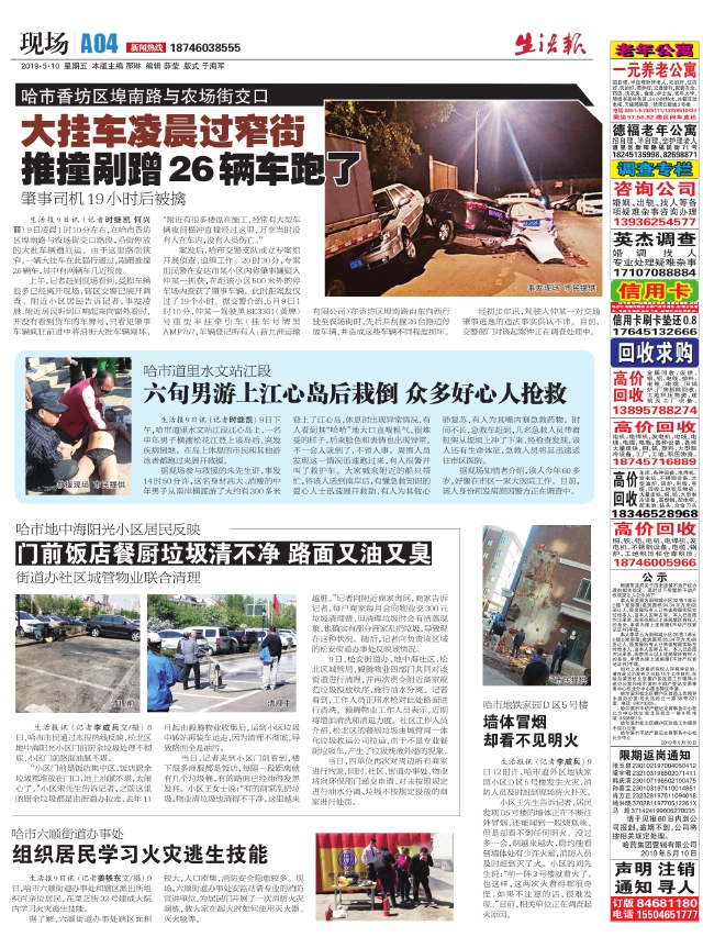大挂车凌晨过窄街推撞剐蹭26辆车跑了