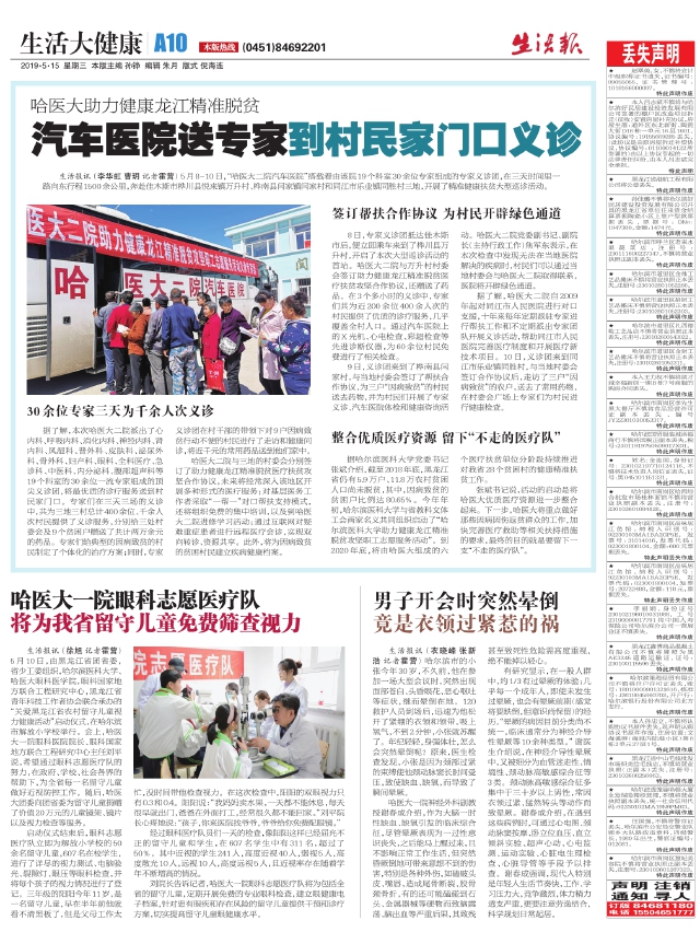 哈医大一院眼科志愿医疗队将为我省留守儿童免费筛查视力