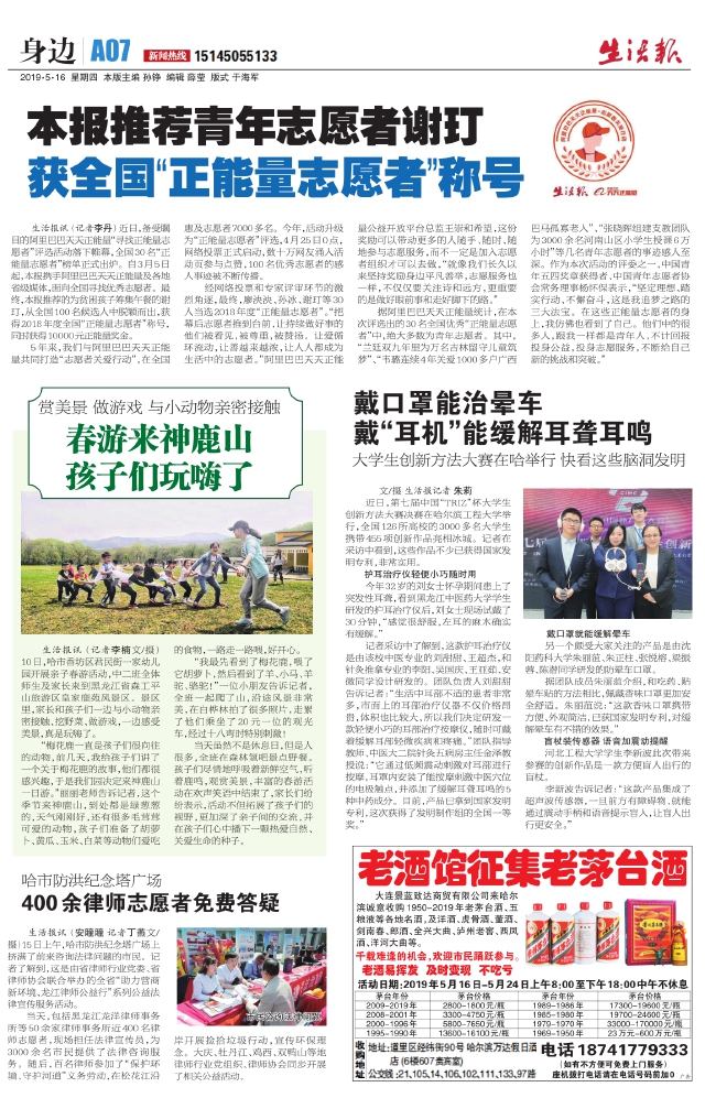 本报推荐青年志愿者谢玎获全国“正能量志愿者”称号