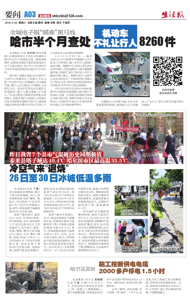 哈市买卖街施工挖断供电电缆2000多户停电1.5小时