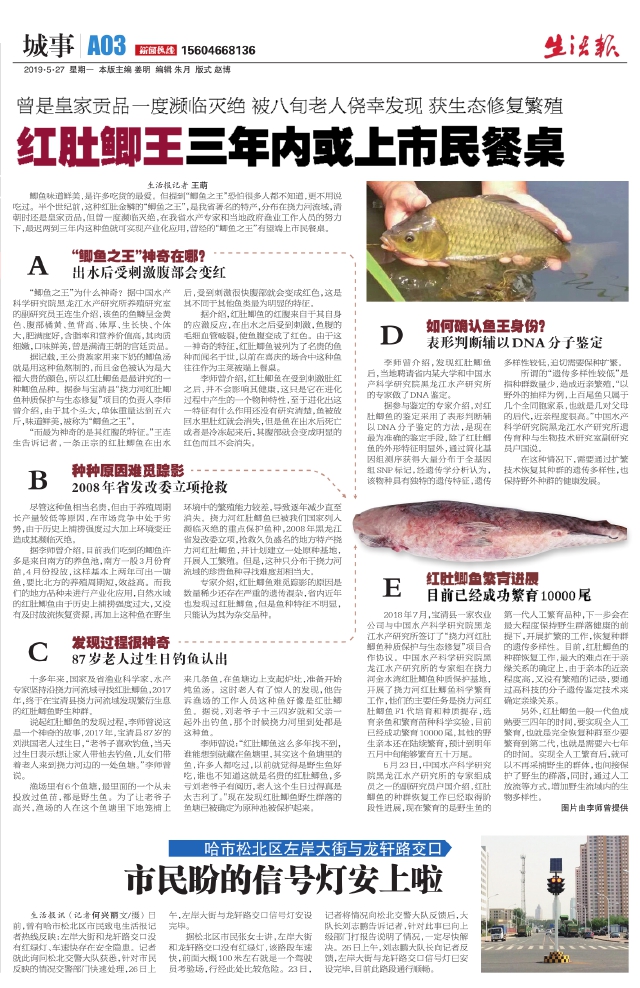 生活报记者王萌 鲫鱼味道鲜美,是许多吃货的最爱。但提到“鲫鱼之王”恐怕很多人都不知道,更不用说吃过。半个世纪前,这种红肚金鳞的“鲫鱼之王”,是我省著名的特产,分布在挠力河流域,清朝时还是皇家贡品,但曾一度濒临灭绝,在我省水产专家和当地政府渔业工作人员的努力下,最迟两到三年内这种鱼就可实现产业化应用,曾经的“鲫鱼之王”有望端上市民餐桌。 “鲫鱼之王”神奇在哪?出水后受刺激腹部会变红 “鲫鱼之王”为什么神奇?据中国水产科学研究院黑龙江水产研究所养殖研究室的副研究员王连生介绍,该鱼的鱼鳞呈金黄色、腹部橘黄、鱼背高、体厚、生长快、个体大,肥满度好,含脂率和营养价值高,其肉质细嫩,口味鲜美,曾是满清王朝的宫廷贡品。 据记载,王公贵族家用来下奶的鲫鱼汤就是用这种鱼熬制的,而且金色被认为是大福大贵的颜色,所以红肚鲫鱼是最讲究的一种鲫鱼品种。据参与宝清县“挠力河红肚鲫鱼种质保护与生态修复”项目的负责人李师曾介绍,由于其个头大,单体重量达到五六斤,味道鲜美,被称为“鲫鱼之王”。 “而最为神奇的是其红腹的特征。”王连生告诉记者,一条正宗的红肚鲫鱼在出水后,受到刺激很快腹部就会变成红色,这是其不同于其他鱼类最为明显的特征。 据介绍,红肚鲫鱼的红腹来自于其自身的应激反应,在出水之后受到刺激,鱼腹的毛细血管破裂,使鱼腹变成了红色。由于这一神奇的特征,红肚鲫鱼被列为了名贵的鱼种而闻名于世,以前在喜庆的场合中这种鱼往往作为主菜被端上餐桌。 李师曾介绍,红肚鲫鱼在受到刺激肚红之后,并不会影响其健康,这只是它在进化过程中产生的一个物种特性,至于进化出这一特征有什么作用还没有研究清楚,鱼被放回水里肚红就会消失,但是鱼在出水后死亡或者是冷冻起来后,其腹部就会变成明显的红色而且不会消失。 种种原因难觅踪影2008年省发改委立项抢救 尽管这种鱼相当名贵,但由于养殖周期长产量较低等原因,在市场竞争中处于劣势,由于历史上捕捞强度过大加上环境变迁造成其濒临灭绝。 据李师曾介绍,目前我们吃到的鲫鱼许多是来自南方的养鱼池,南方一般3月份育苗,4月份投放,这样基本上两年可出一塘鱼,要比北方的养殖周期短,效益高。而我们的地方品种未进行产业化应用,自然水域的红肚鲫鱼由于历史上捕捞强度过大,又没有及时放流恢复资源,再加上这种鱼在野生环境中的繁殖能力较差,导致逐年减少直至消失。挠力河红肚鲫鱼已被我们国家列入濒临灭绝的重点保护鱼种,2008年黑龙江省发改委立项,抢救久负盛名的地方特产挠力河红肚鲫鱼,并计划建立一处原种基地,开展人工繁殖。但是,这种只分布于挠力河流域的珍贵鱼种寻找难度却相当大。 专家介绍,红肚鲫鱼难觅踪影的原因是数量稀少还存在严重的遗传混杂,省内近年也发现过红肚鲫鱼,但是鱼种特征不明显,只能认为其为杂交品种。 发现过程很神奇87岁老人过生日钓鱼认出 十多年来,国家及省渔业科学家、水产专家坚持沿挠力河流域寻找红肚鲫鱼,2017年,终于在宝清县挠力河流域发现繁衍生息的红肚鲫鱼野生种群。 说起红肚鲫鱼的发现过程,李师曾说这是一个神奇的故事,2017年,宝清县87岁的刘洪国老人过生日,“老爷子喜欢钓鱼,当天过生日表示想让家人带他去钓鱼,儿女们带着老人来到挠力河边的一处鱼塘。”李师曾说。 渔场里有6个鱼塘,最里面的一个从未投放过鱼苗,都是野生鱼。为了让老爷子高兴,渔场的人在这个鱼塘里下地笼捕上来几条鱼,在鱼塘边上支起炉灶,准备开始炖鱼汤。这时老人有了惊人的发现,他告诉渔场的工作人员这种鱼好像是红肚鲫鱼。据说,刘老爷子十三四岁就和父亲一起外出钓鱼,那个时候挠力河里到处都是这种鱼。 李师曾说:“红肚鲫鱼这么多年找不到,谁能想到就藏在鱼塘里,其实这个鱼塘里的鱼,许多人都吃过,以前就觉得是野生鱼好吃,谁也不知道这就是名贵的红肚鲫鱼,多亏刘老爷子有阅历,老人这个生日过得真是太吉利了。”现在发现红肚鲫鱼野生群落的鱼塘已被确定为原种池被保护起来。 如何确认鱼王身份?表形判断辅以DNA分子鉴定 李师曾介绍,发现红肚鲫鱼后,当地聘请省内某大学和中国水产科学研究院黑龙江水产研究所的专家做了DNA鉴定。 据参与鉴定的专家介绍,对红肚鲫鱼的鉴定采用了表形判断辅以DNA分子鉴定的方法,是现在最为准确的鉴定手段,除了红肚鲫鱼的外形特征明显外,通过简化基因组测序获得大量分布于全基因组SNP标记,经遗传学分析认为,该物种具有独特的遗传特征,遗传多样性较低,迫切需要保种扩繁。 所谓的“遗传多样性较低”是指种群数量少,造成近亲繁殖,“以野外的抽样为例,上百尾鱼只属于几个全同胞家系,也就是几对父母的后代,近亲程度很高。”中国水产科学研究院黑龙江水产研究所遗传育种与生物技术研究室副研究员户国说。 在这种情况下,需要通过扩繁技术恢复其种群的遗传多样性,也保持野外种群的健康发展。 红肚鲫鱼繁育进展目前已经成功繁育10000尾 2018年7月,宝清县一家农业公司与中国水产科学研究院黑龙江水产研究所签订了“挠力河红肚鲫鱼种质保护与生态修复”项目合作协议。中国水产科学研究院黑龙江水产研究所的专家组在挠力河金水湾红肚鲫鱼种质保护基地,开展了挠力河红肚鲫鱼科学繁育工作,