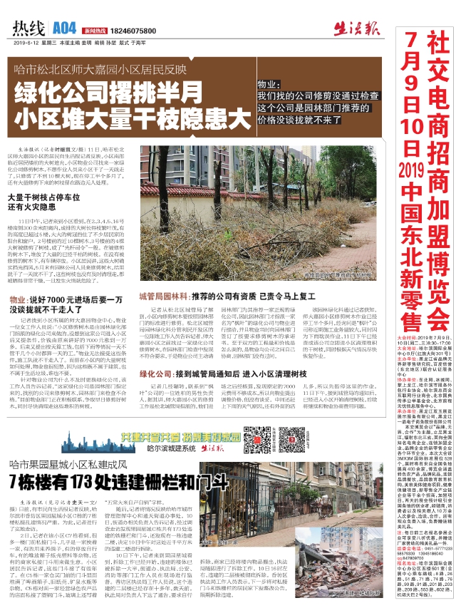 绿化公司撂挑半月小区堆大量干枝隐患大