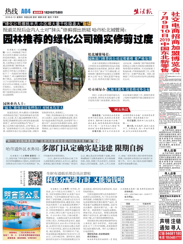 哈市道外区水务局:多部门认定确实是违建限期自拆