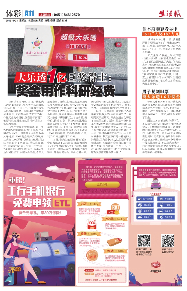 大乐透1亿巨奖得主:奖金用作科研经费